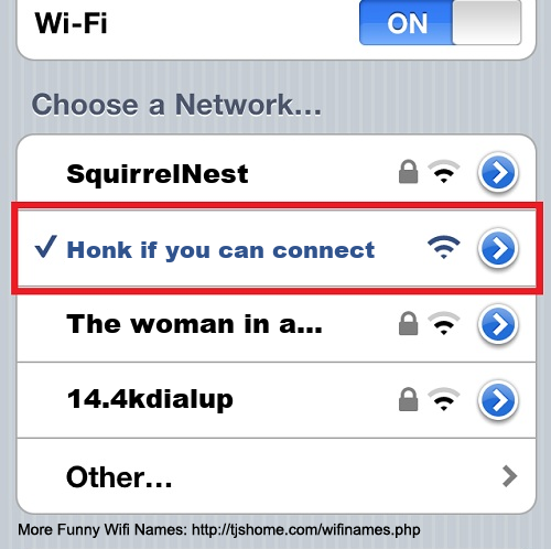 Funny WiFi Name #6265 [Honk if you can connect ]