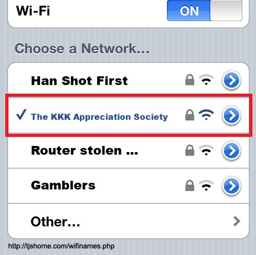 Funny WiFi Name #6317 [The KKK Appreciation Society ]