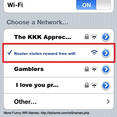 Funny WiFi Name #6318 [Router stolen reward free wifi ]