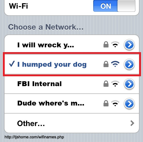 Funny WiFi Name #6346 [I humped your dog ]