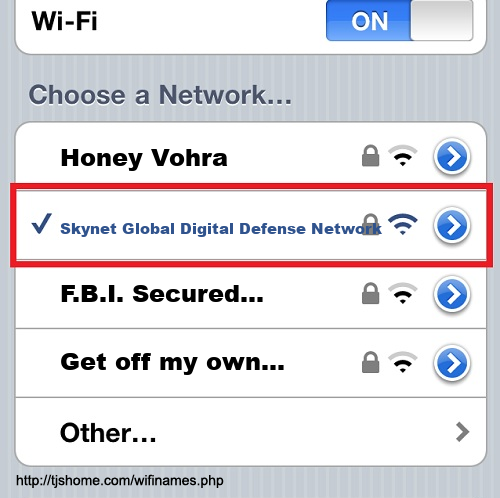 Funny WiFi Name #6419 [Skynet Global Digital Defense Network ]