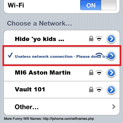 Funny WiFi Name #6462 [Useless network connection - Please don't try it ]
