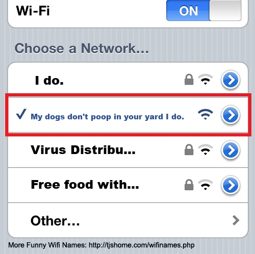 Funny WiFi Name #6478 [My dogs don't poop in your yard I do. ]