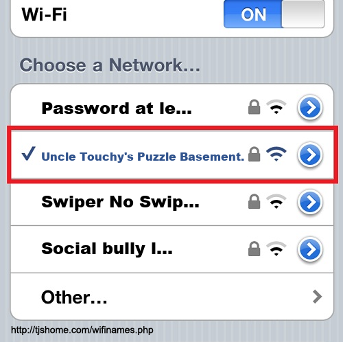 Funny WiFi Name #6529 [Uncle Touchy's Puzzle Basement. ]