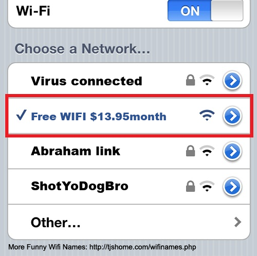Funny WiFi Name #6695 [Free WIFI!!! $13.95/month ]