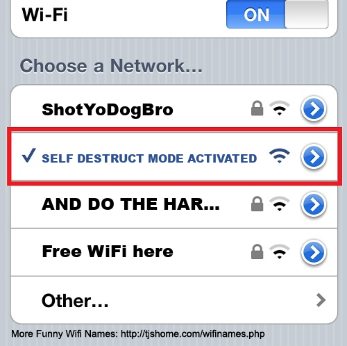 Funny WiFi Name #6698 [SELF DESTRUCT MODE ACTIVATED! ]