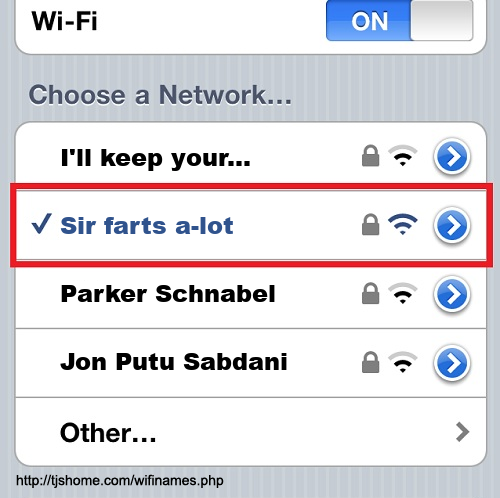 Funny WiFi Name #6752 [Sir farts a-lot ]