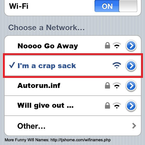 Funny WiFi Name #6802 [I'm a crap sack ]