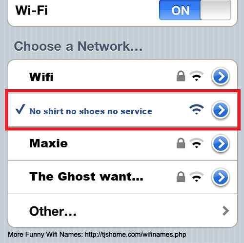Funny WiFi Name #6862 [No shirt no shoes no service ]