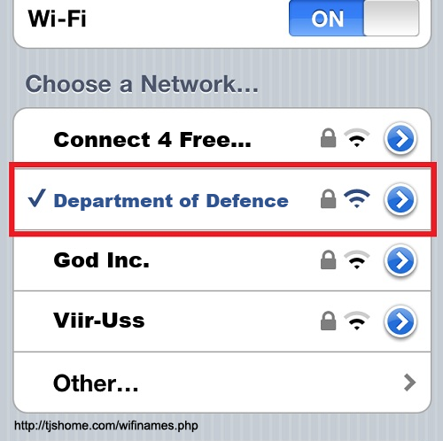 Funny WiFi Name #6870 [Department of Defence ]