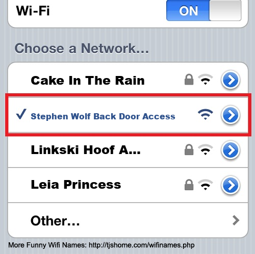 Funny WiFi Name #6884 [Stephen Wolf Back Door Access ]