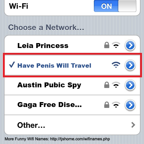 Funny WiFi Name #6887 [Have Penis Will Travel ]