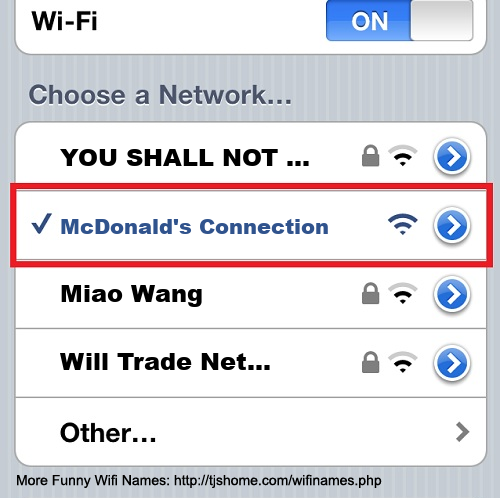 Funny WiFi Name #6925 [McDonald's Connection ]
