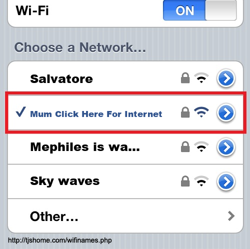 Funny WiFi Name #6956 [Mum Click Here For Internet ]