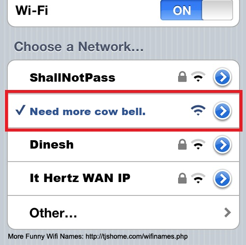 Funny WiFi Name #6988 [Need more cow bell. ]