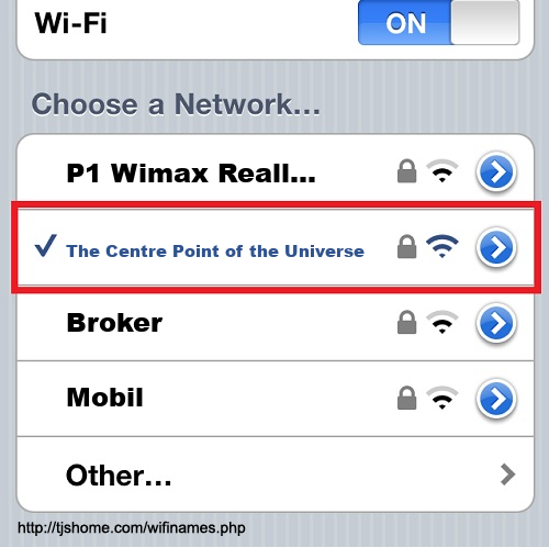 Funny WiFi Name #7006 [The Centre Point of the Universe ]