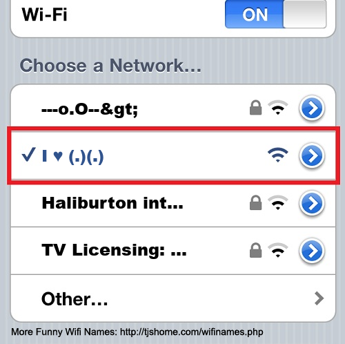 Funny WiFi Name #7152 [I ♥ (.)(.) ]