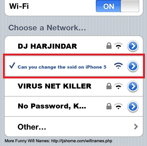 Funny WiFi Name #7172 [Can you change the ssid on iPhone 5 ]