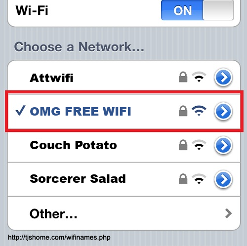 Funny WiFi Name #7214 [OMG FREE WIFI ]