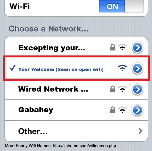 Funny WiFi Name #7314 [Your Welcome (Seen on open wifi) ]