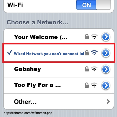 Funny WiFi Name #7316 [Wired Network you can't connect lol ]