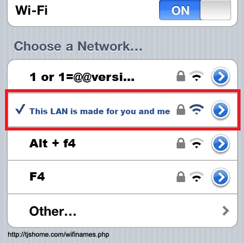 Funny WiFi Name #7369 [This LAN is made for you and me ]