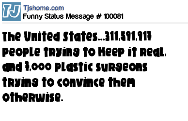 X  The United States...311,591,917 people trying to keep it real, and 7,000 plastic surgeons trying to convince them otherwise.