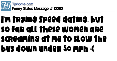 X says I'm trying Speed dating, but so far all these women are screaming at me to slow the bus down under 50 mph :(