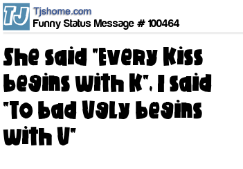 X is She said "Every Kiss begins with K", I said "To bad Ugly begins with U"