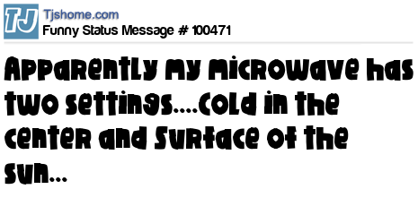 X Apparently my microwave has two settings....Cold in the center and Surface of the sun...
