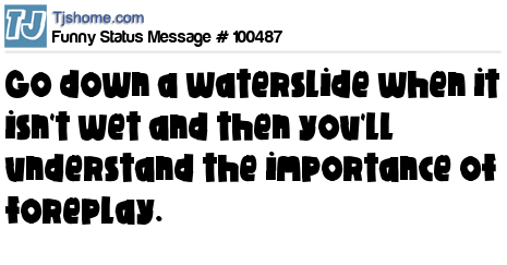 - # 82822 Go down a waterslide while it isn't wet and then you'll underdstand why foreplay is so important. - That's what she said.