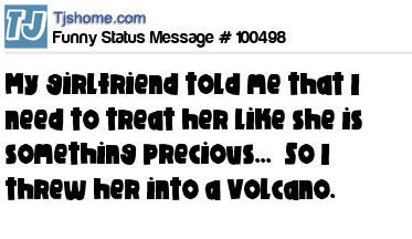X  My girlfriend told me that I need to treat her like she is something precious...  So I threw her into a Volcano.