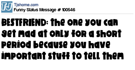 - # 100018 BESTFRIEND: the one you can get mad at only for a short period because you have important stuff to tell them.