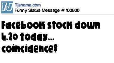 - # 18637 Today In the Facebook Stock Market, 'Happy Easter' status updates are up 200%, 'Stupid Group Invitations' are up 50%, 'Friendship Bonding' plummets and 'Exaggerations' are down 3.40 pts on the Nasdaq.