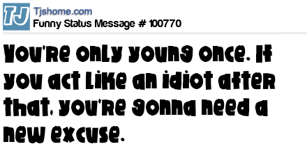 X You're only young once. If you act like an idiot after that, you're gonna need a new excuse.