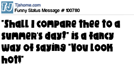 X "Shall I compare thee to a summer's day?" is a fancy way of saying "You look hot!"