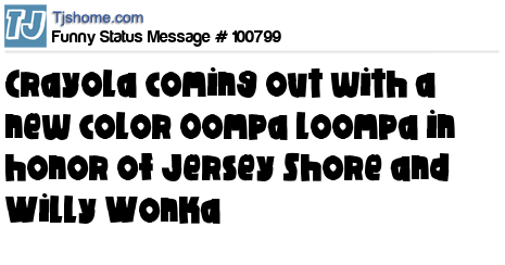 X says Crayola coming out with a new color Oompa Loompa in honor of Jersey Shore and Willy Wonka