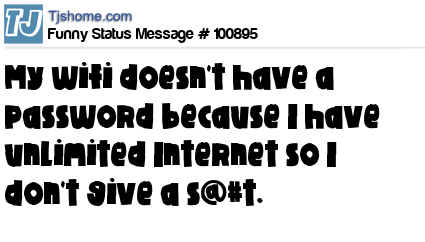 X is My wifi doesn't have a password because I have unlimited Internet so I don't give a s@#t.
