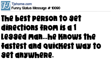 X is The best person to get directions from is a 1 legged man...he knows the fastest and quickest way to get anywhere.