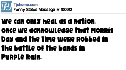 X says We can only heal as a nation, once we acknowledge that Morris Day and the Time were robbed in the battle of the bands in Purple Rain.