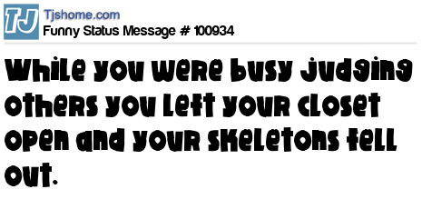X says While you were busy judging others you left your closet open and your skeletons fell out.