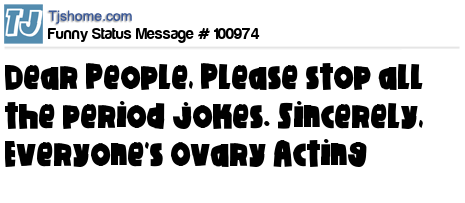 X Dear People, Please stop all the period jokes. Sincerely, Everyone's Ovary Acting