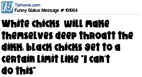 X is White chicks will make themselves deep throatt the dikk, black chicks get to a certain limit like "I can't do this"