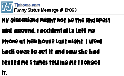 X My girlfriend might not be the sharpest girl around. I accidentally left my phone at her house last night. I went back over to get it and saw she had texted me 5 times telling me I forgot it.