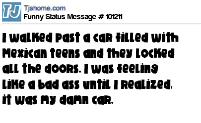 X says I walked past a car filled with Mexican teens and they locked all the doors. I was feeling like a bad ass until I realized, it was my damn car.