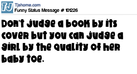 X says Don't judge a book by its cover but you can judge a girl by the quality of her baby toe.
