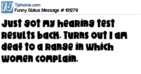 X Just got my hearing test results back. Turns out I am deaf to a range in which women complain.