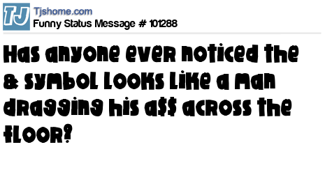 - # 96355 Have you noticed that the "&" symbol looks like a guy dragging his ass across the floor?