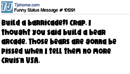 X Build a barricade?! Crap, I thought you said build a bear arcade. Those bears are gonna be pissed when I tell them no more Cruis'n USA.