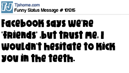 - # 70844 Facebook says we're 'friends' but, trust me, I wouldn't hesitate to punch you in the face.